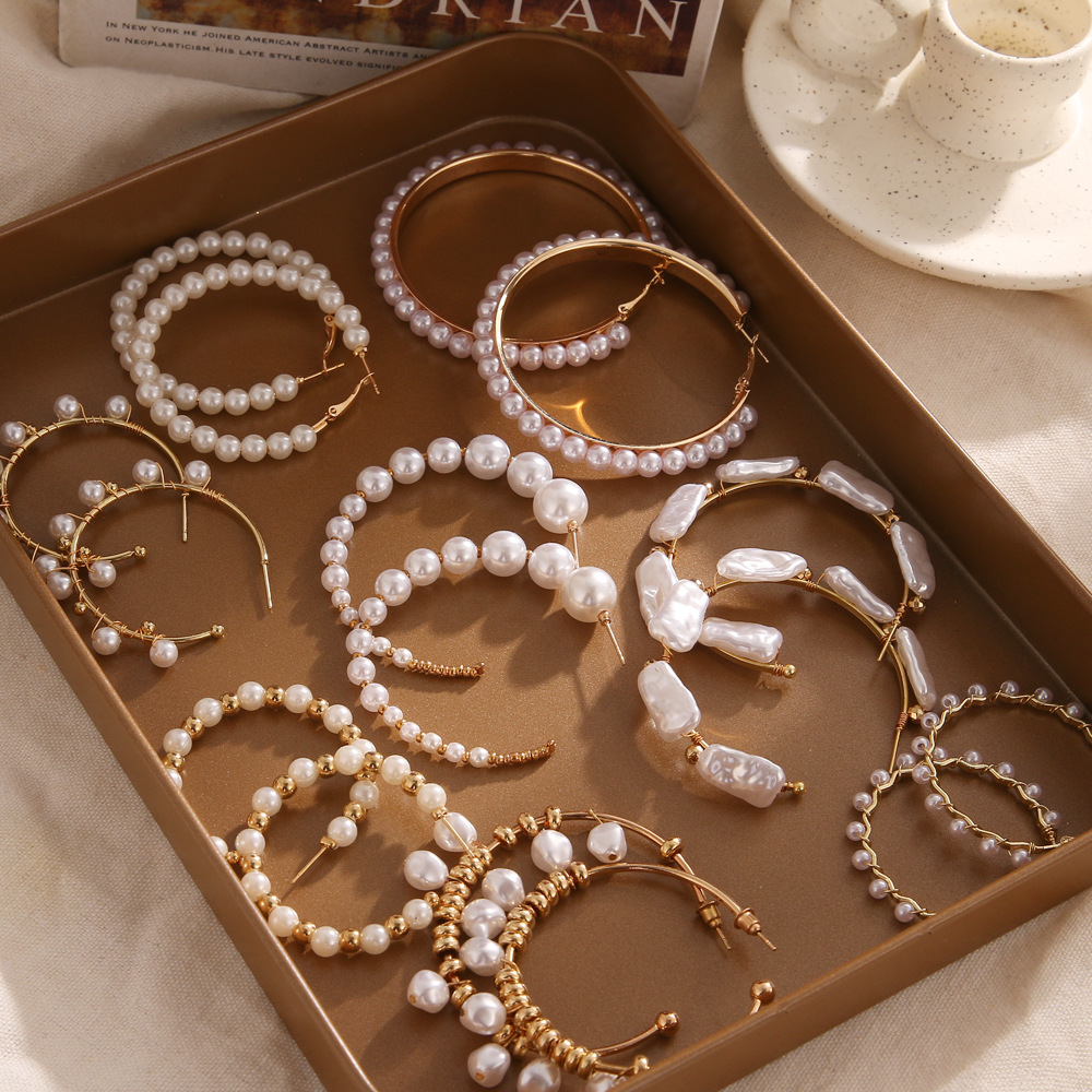 国境を越えて人気の高い、シンプルでファッショナブルなパールイヤリング。個性的なデザインで高級感のある女性用イヤリング。欧米風レトロな合金製ジュエリー。