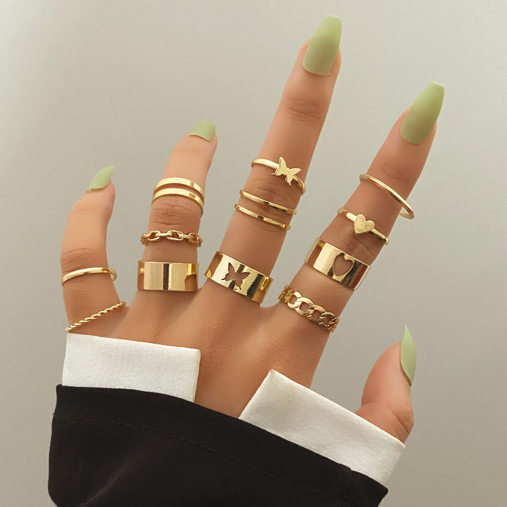 欧米の越境した新型の金色の関節の指輪のアイデアのレトロな透かしの蛇の形の蝶のレースの指輪のセットの12セット