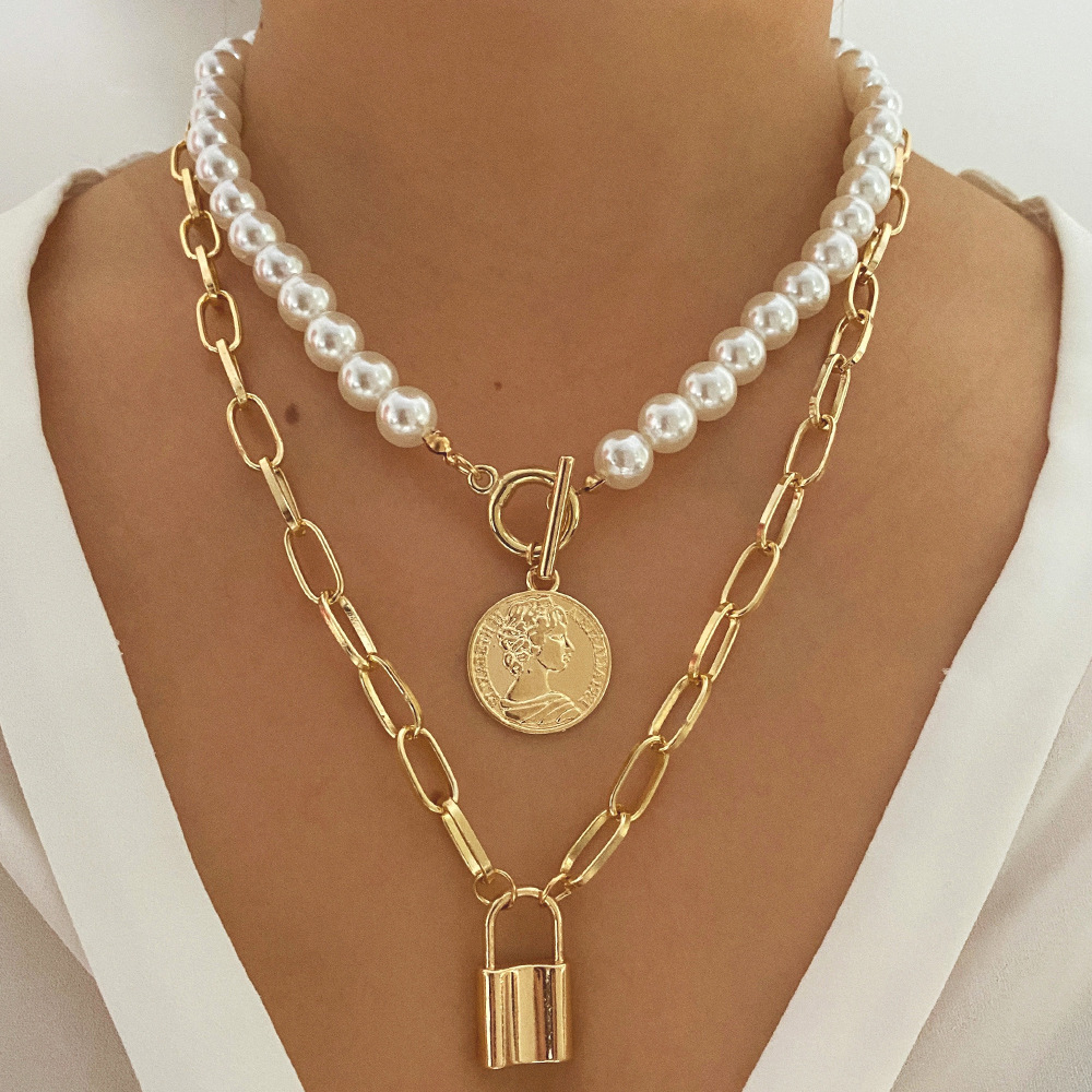 国境を越えて人気のある人の頭の真珠の多層のネックレスのファッションは簡単です。