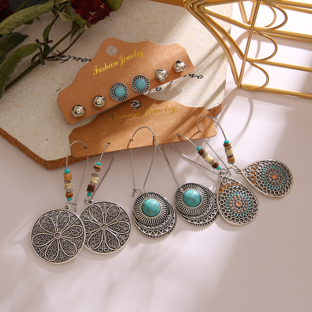 レトロな透かし彫りの夢ネットの銀色の6対のイヤリングのセットの民族の流蘇の色の釉薬のボヘミアンの耳の飾り