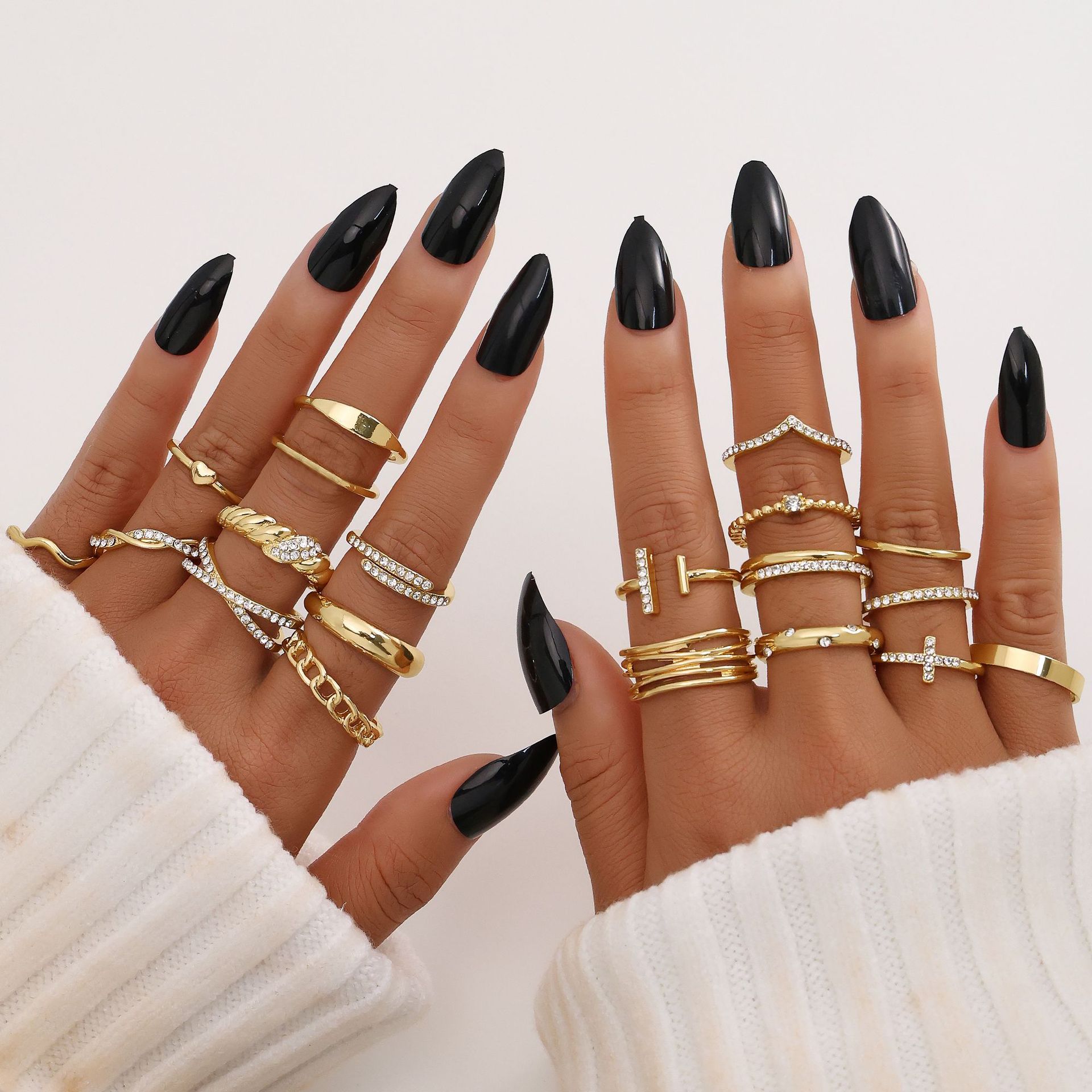 ドリル付きクロス結節愛スパイラル指輪20点セット金色多要素X交差多層関節指輪
