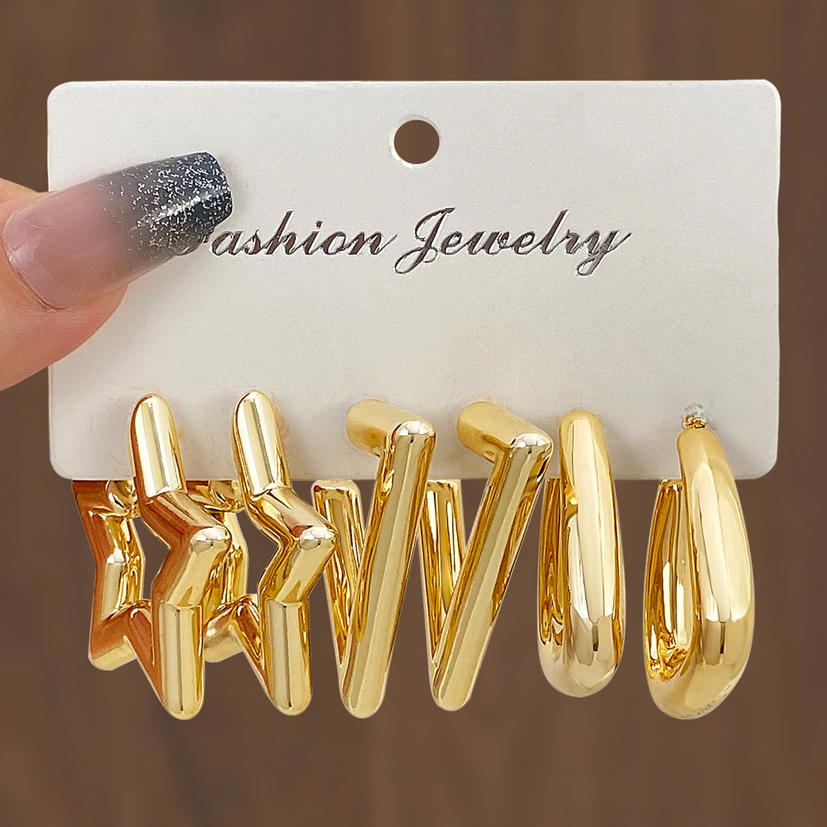 新ins潮金高級五角星耳輪3対の服装気質は軽やかな弧三角形の幾何学的なピアスアクセサリーになっている
