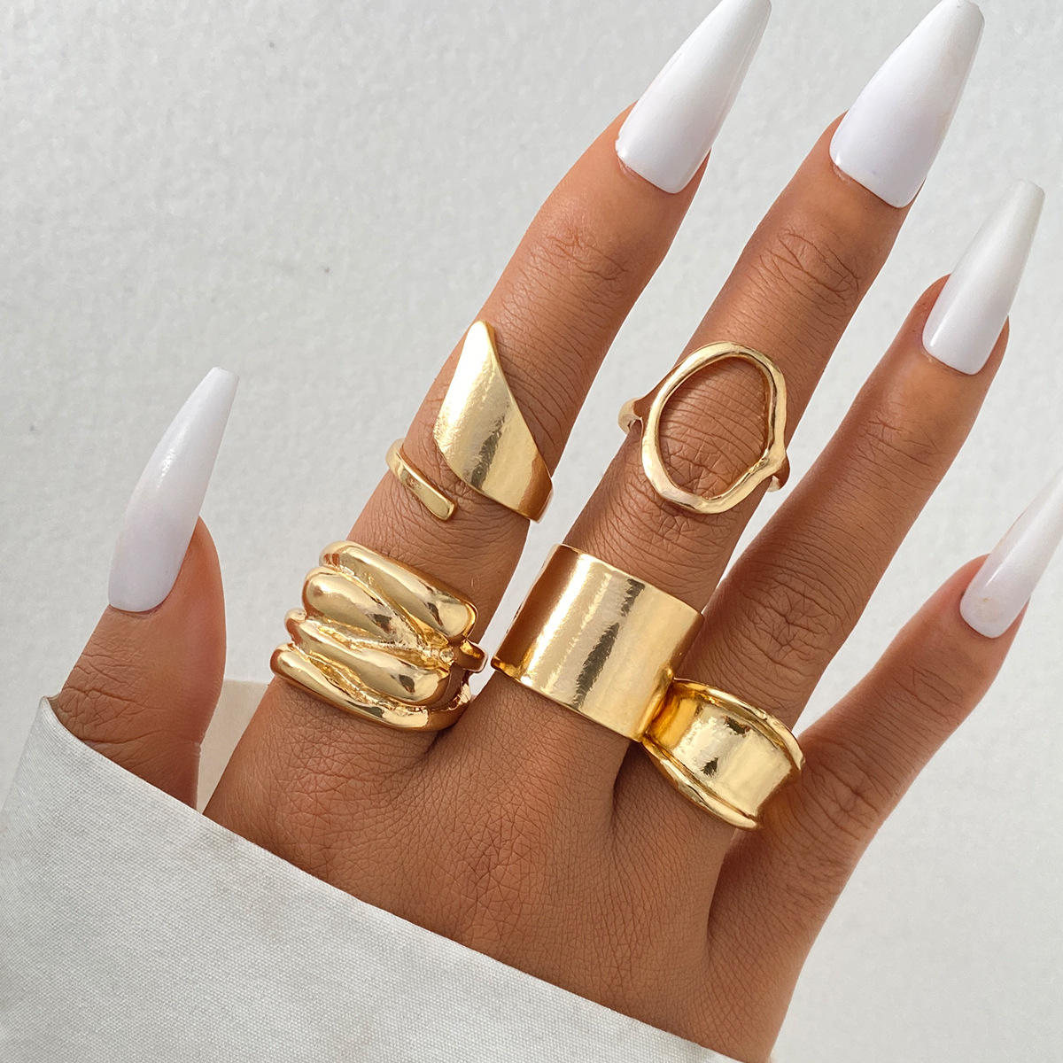 欧米国境を越えた幾何学金属風溶岩線指輪セット不規則な光沢面開口光沢面金色指輪