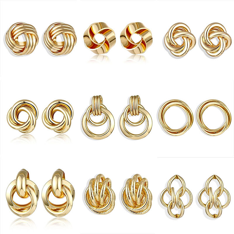 新しいクロスボーダーカード型イヤリングセット、高級感のある女性向け欧米風ファッション、麻ひも模様の丸型電気メッキ、環境に優しいイヤリングアクセサリー
