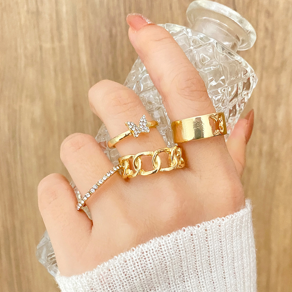 ファッションのシンプルな蝶のダイヤモンドの透かし彫りの指輪の大衆のシンプルで軽い贅沢な気質の合金の指輪の4つの組み合わせ