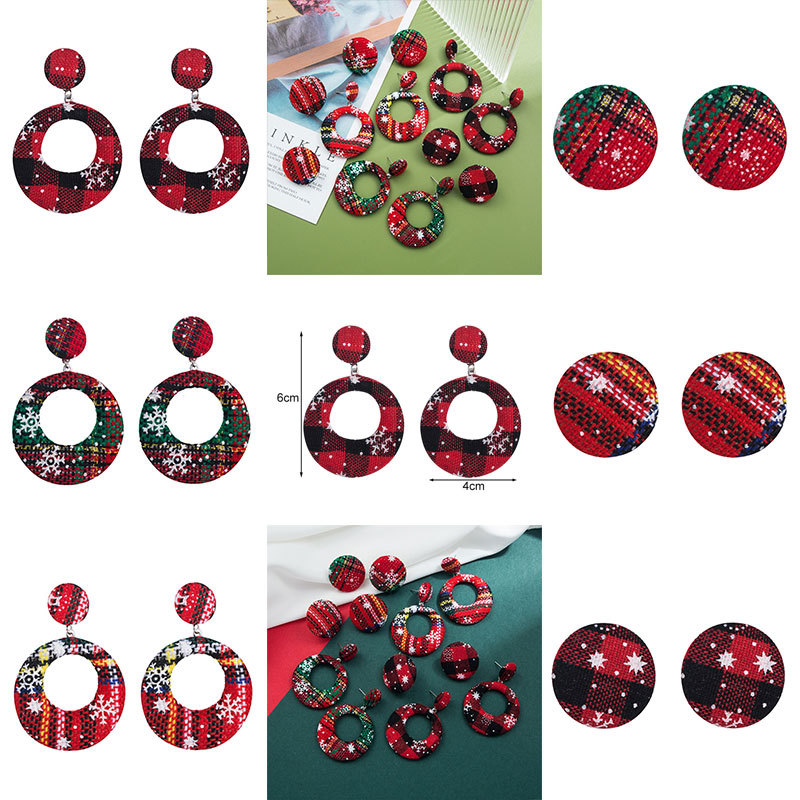 布芸衝突色縞格クリスマスピアス非対称緑赤雪花円形ボタン楕円環ペンダントイヤリング