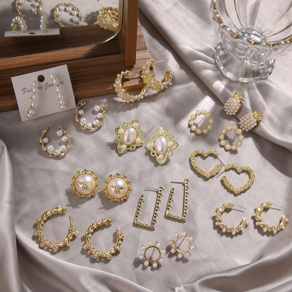 新商品のファッションシンプルなイヤリング愛の幾何学的な不規則なダイヤモンドの極めてシンプルなデザインの高級感のある合金真珠のイヤリング