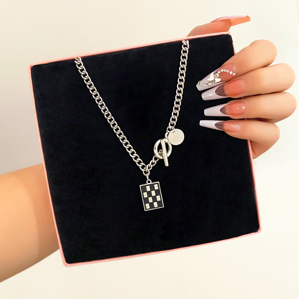 外国貿易の人気のある正方形の白黒のチェス盤の格のチタンの鋼のネックレスの中で性の冷たい風の円盤のペンダントのネックレスの装飾