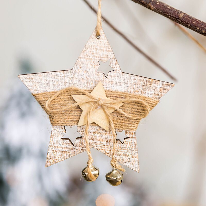 2021新型木製五角星ヘラジカ靴下小ストラップ装飾クリスマス装飾クリスマスツリーストラップ