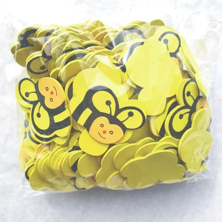少額卸売り木製黄色ミツバチ自己接着シール木製児童手作りdiy木片製作装飾用品
