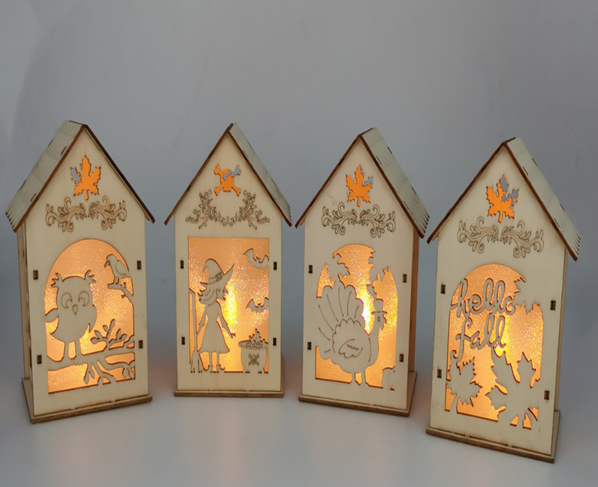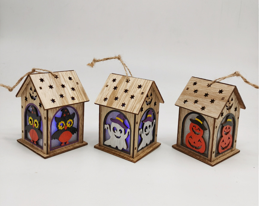 クロスボーダー人気ハロウィン装飾木製置物ledイルミネーション発光木製小屋工芸品祝日プレゼント