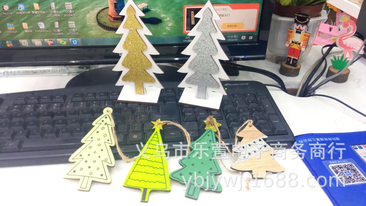 カラーミニクリスマスツリーペンダントクロスボーダークリエイティブ木製立体クリスマス部屋掛けインテリア用品