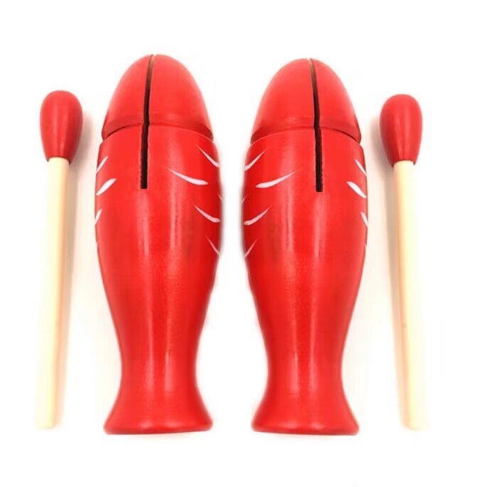 漫画の子供の打楽器の木製の鈴のオルフの木製の木の色の赤い木の魚のおもちゃの卸売りのおもちゃ