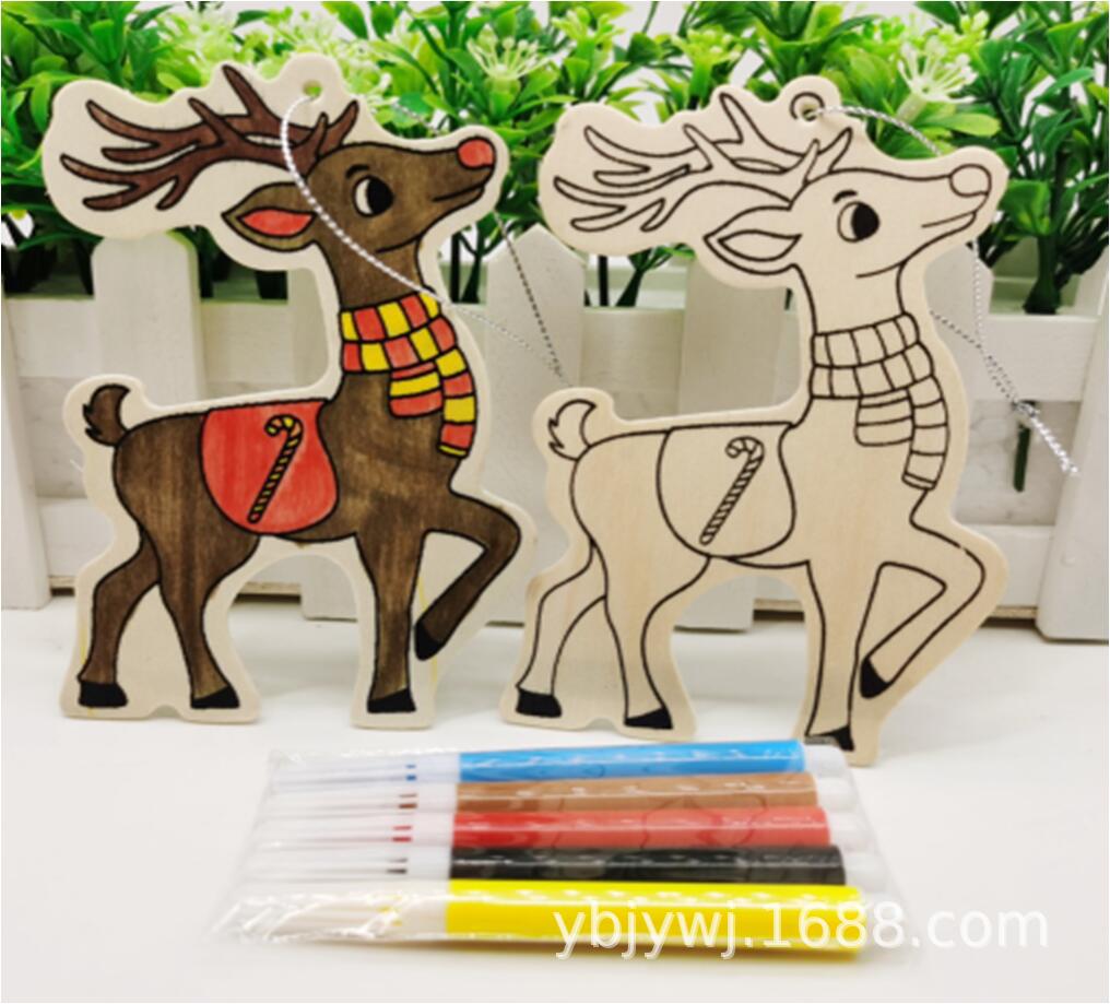 新しい人気のクリスマス装飾ストラップの子供の手作りdiy落書きの木片は3本のペンを持っています。