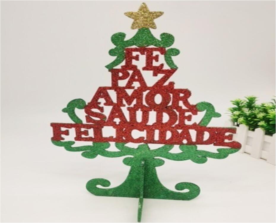 木製のミニクリスマスツリーのデスクトップにクリスマス装飾品を飾るオープンシーンにdiyクリスマスプレゼントを飾る