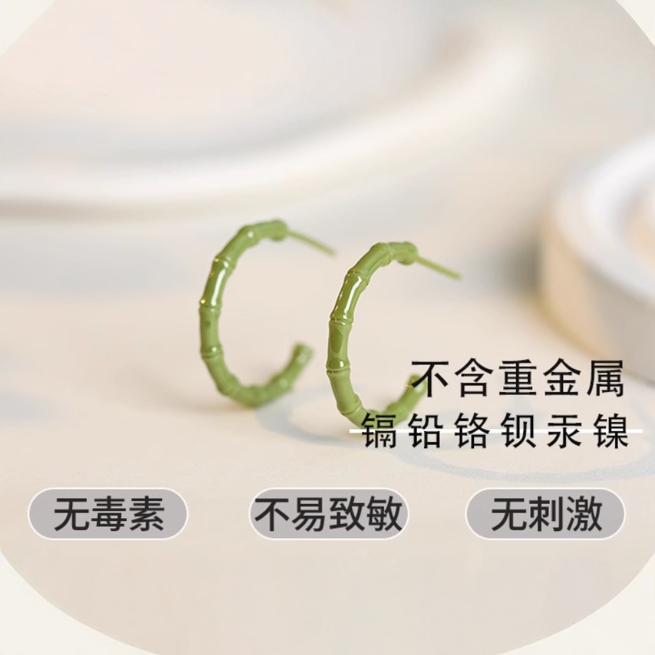 スポット卸売C型イヤリング、ファッショナブルなレトロな竹イヤークリップ、キャンディーカラーの新鮮でシンプルなパーソナライズされたイヤリング