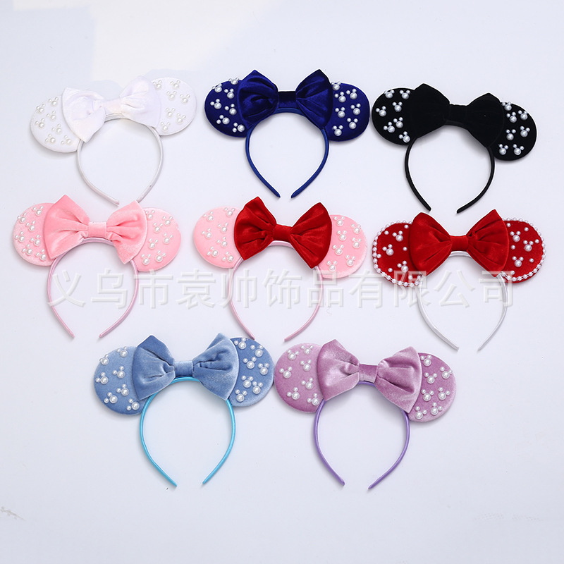 2024年新作パールミッキーヘアバンド 子供用装飾ベルベットミッキーヘッドドレス 遊園地装飾ヘアアクセサリー