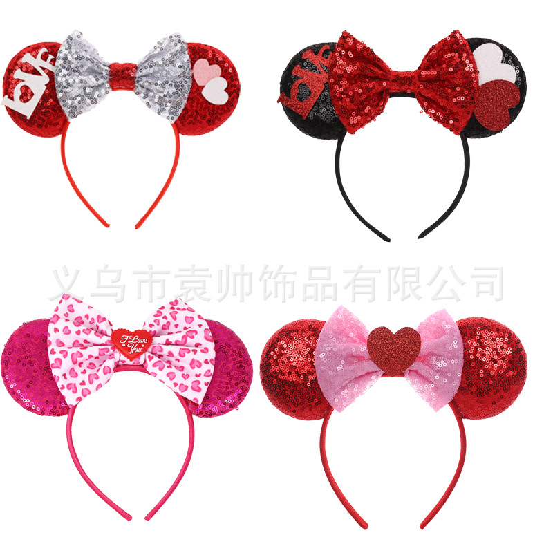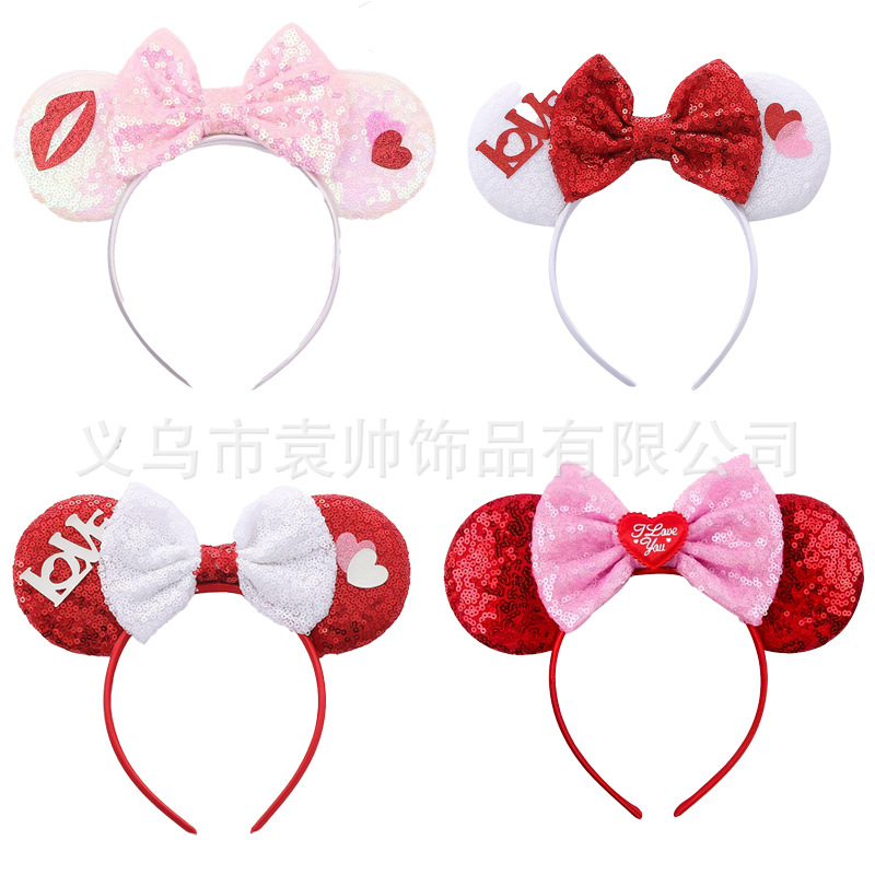 バレンタインミッキー蝶結び髪フープミッキーマウスパーティー遊園地お祭り頭フープ子供ウサギ耳ヘアアクセサリー