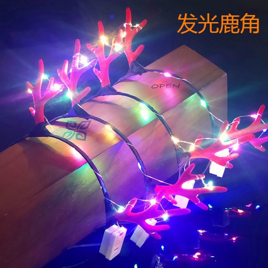 2020新型発光鹿角カチューシャクリスマスLED発光頭飾り金糸カチューシャ露店発光玩具卸売り