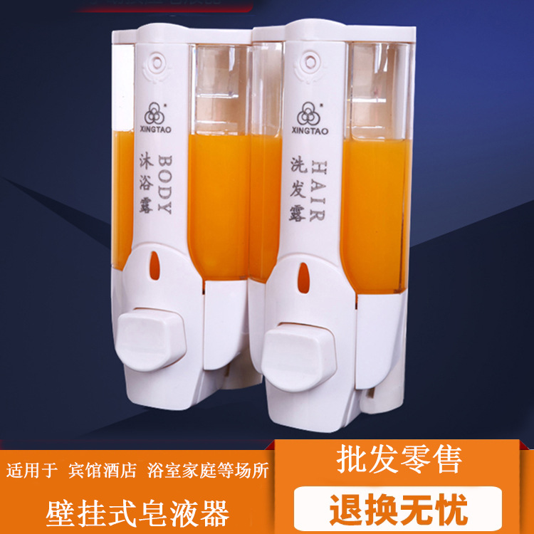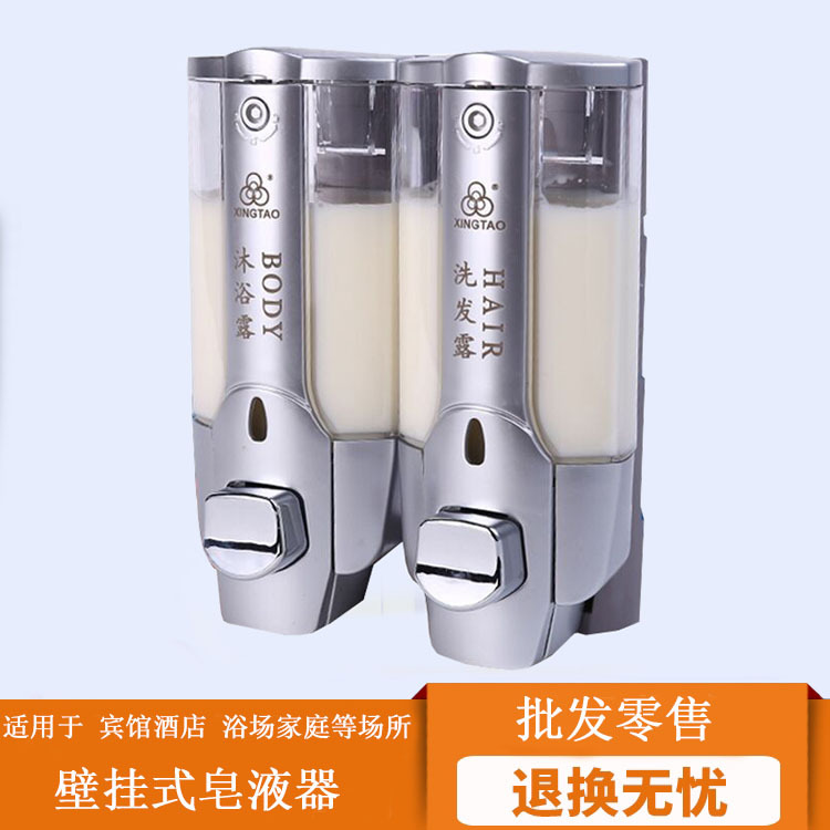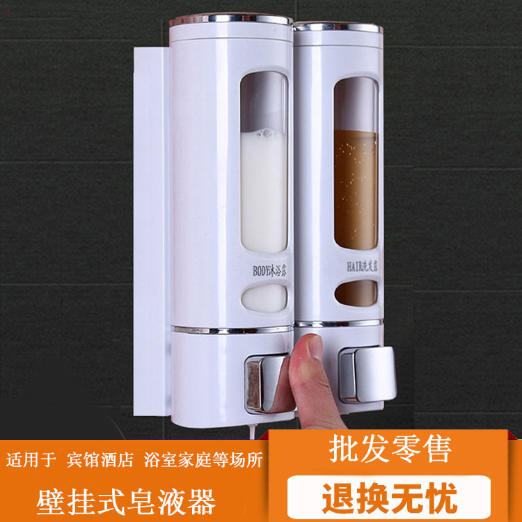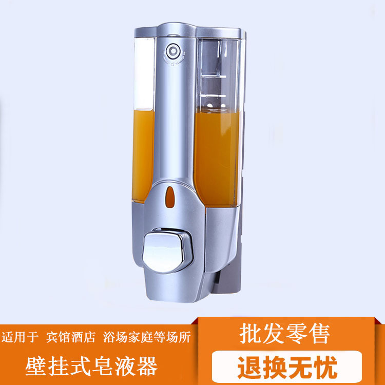 ホテルの壁掛け式手動押しソープディスペンサー浴室シャンプー入浴剤箱手洗い液二合一本