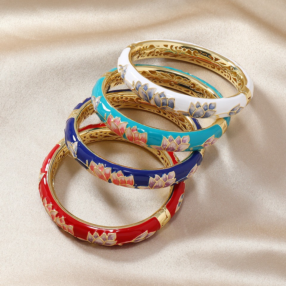 新型北京景泰藍ブレスレット蓮レトロエナメルカラーオープンファッションブレスレット国潮手飾り故宮同金