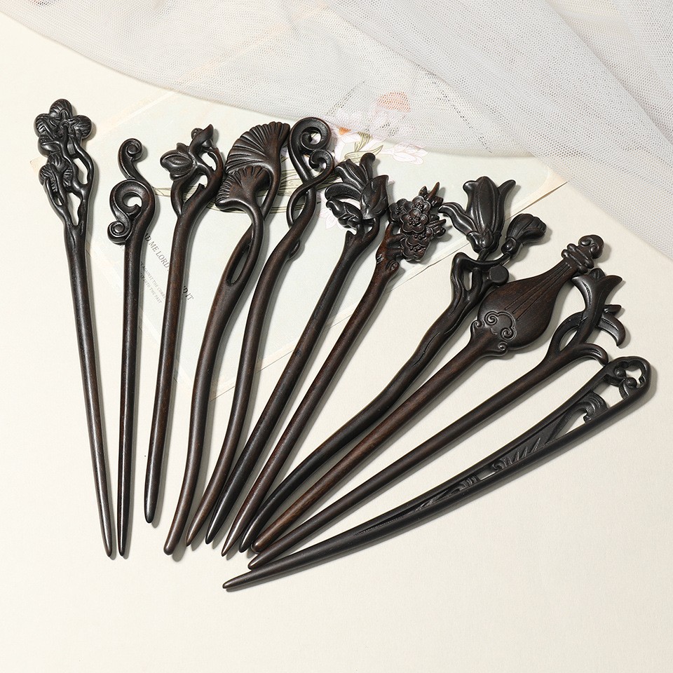 新中国風彫刻モデルの黒檀木のヘアピンの高級感があります。