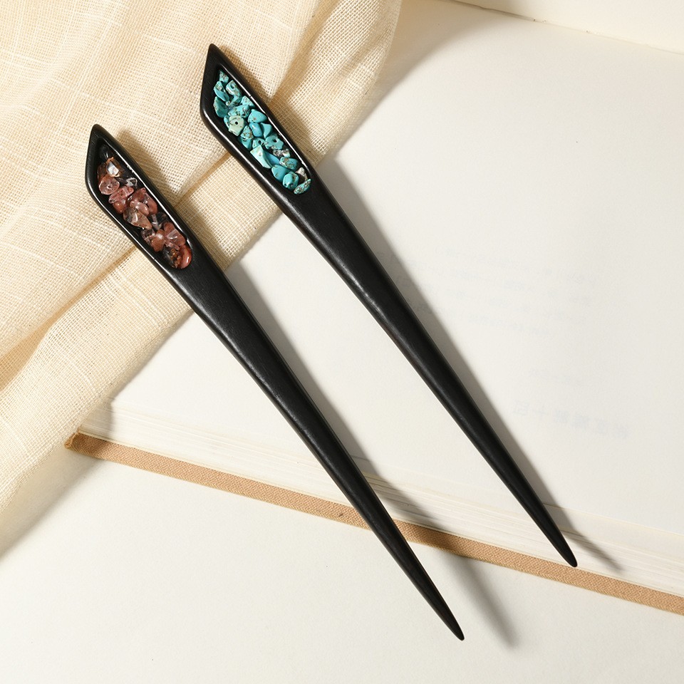 レトロ新中国式創意黒檀木緑松石象眼ヘアピンシンプル百合漢服チャイナドレス髪飾り