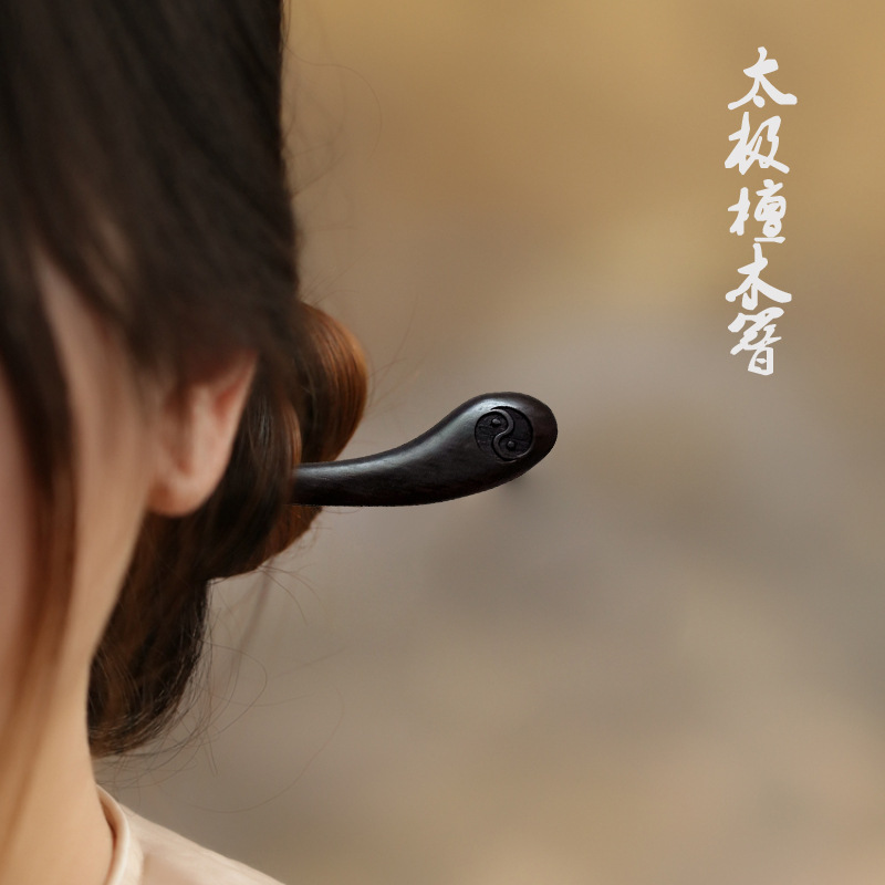 新中国式国風太極両儀彫刻創意八卦木かんざし古風盤髪かんざし髪飾り