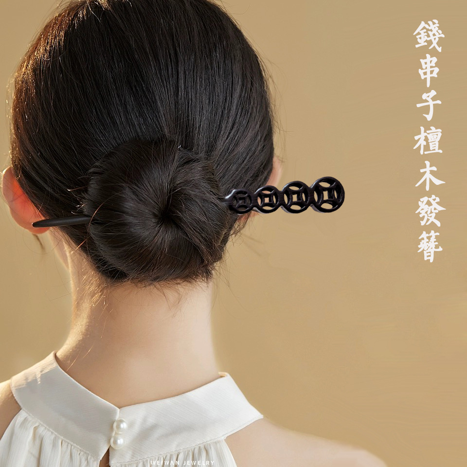 文芸復古新中国式創意国風古典銭串子高級感黒檀木かんざし