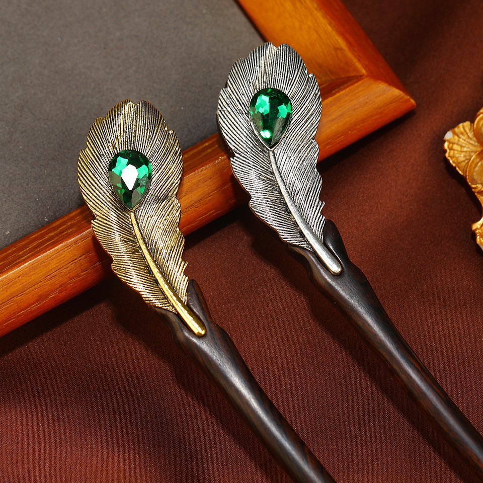 新中国式の黒檀木の復古合金の羽毛の国風の髪のかんざしの髪飾りは簡単です。