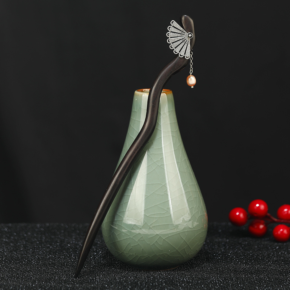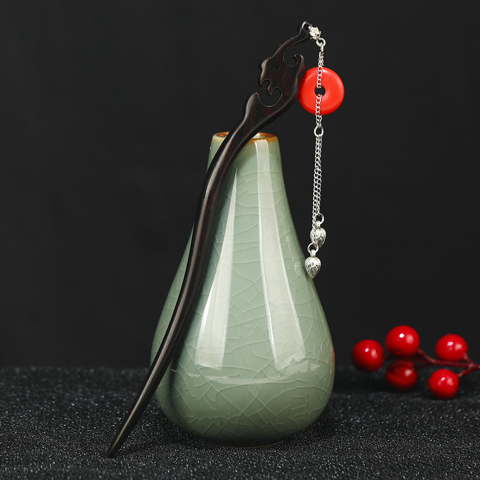 レトロ黒檀木製ヘアピンペンダント付き木製ヘアピン現代シンプルな大気古風高級感ヘアアクセサリー