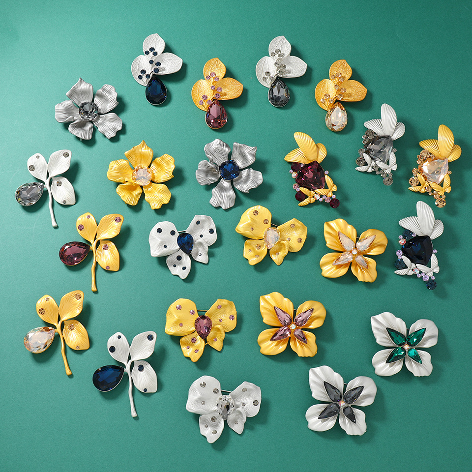 レトロなファッションのダイヤモンドの花輪のブローチの女性の気質の百合のスーツのコートのアクセサリーのコートのアクセサリーの現物の卸売り