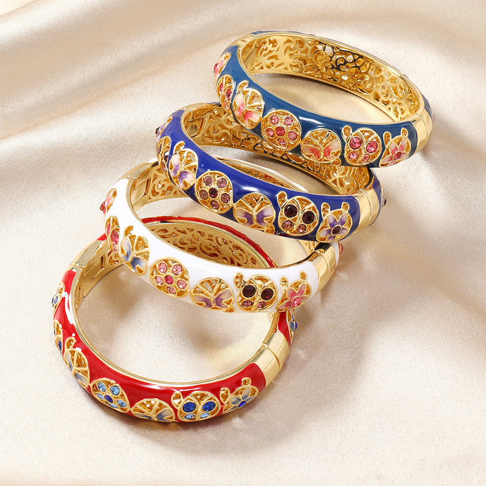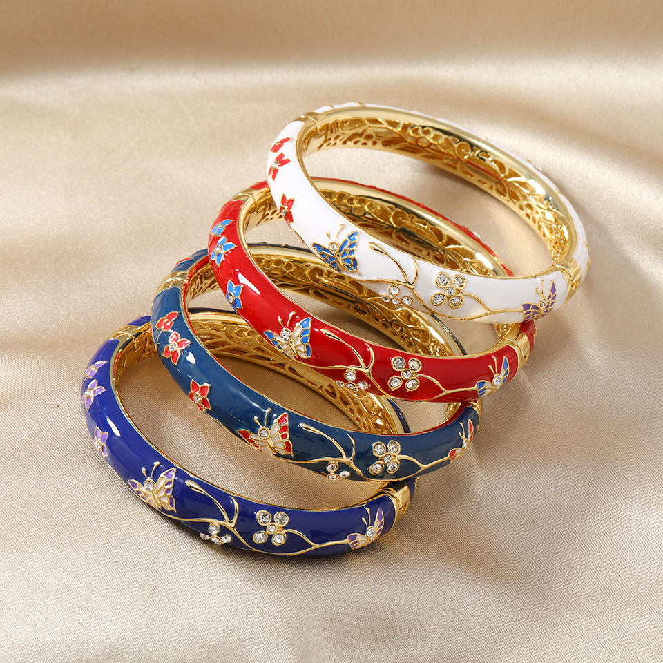 復古民族風老北京景泰藍蝶ブレスレットエナメル二重透かし彫りファッション百合チャイナドレス装飾品