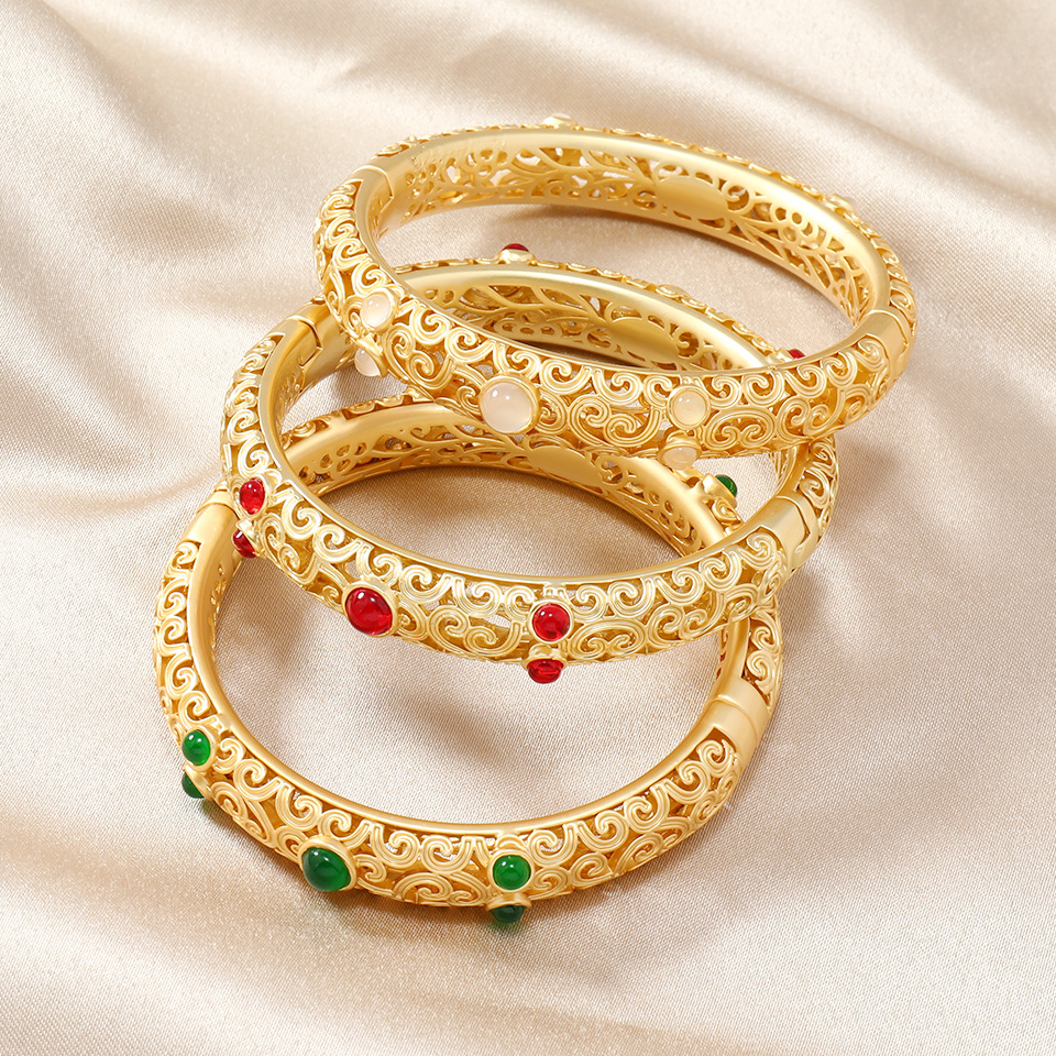 新古法金工芸二重透かし氷玉金ブレスレットレトロ民族風伝統的な開口ブレスレットジュエリー