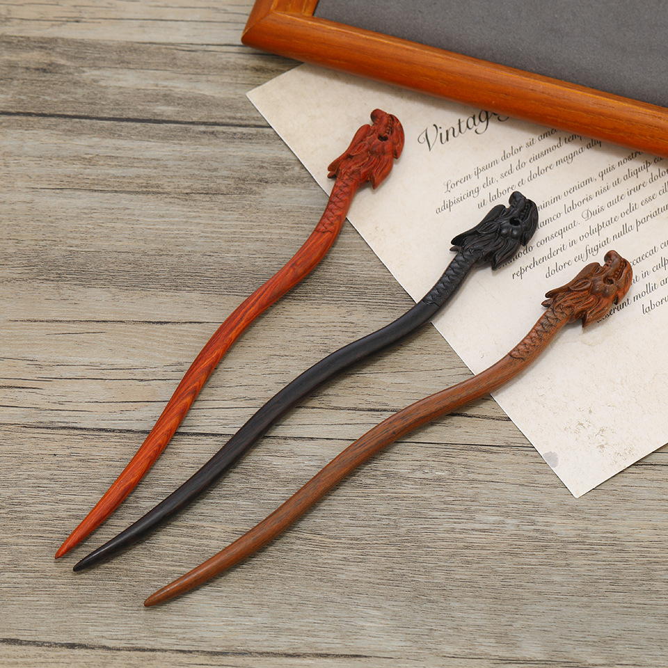 龍年中国風黒檀木質ヘアピン十二生肖蛇口木かんざしチャイナドレス漢服百合盤髪飾り