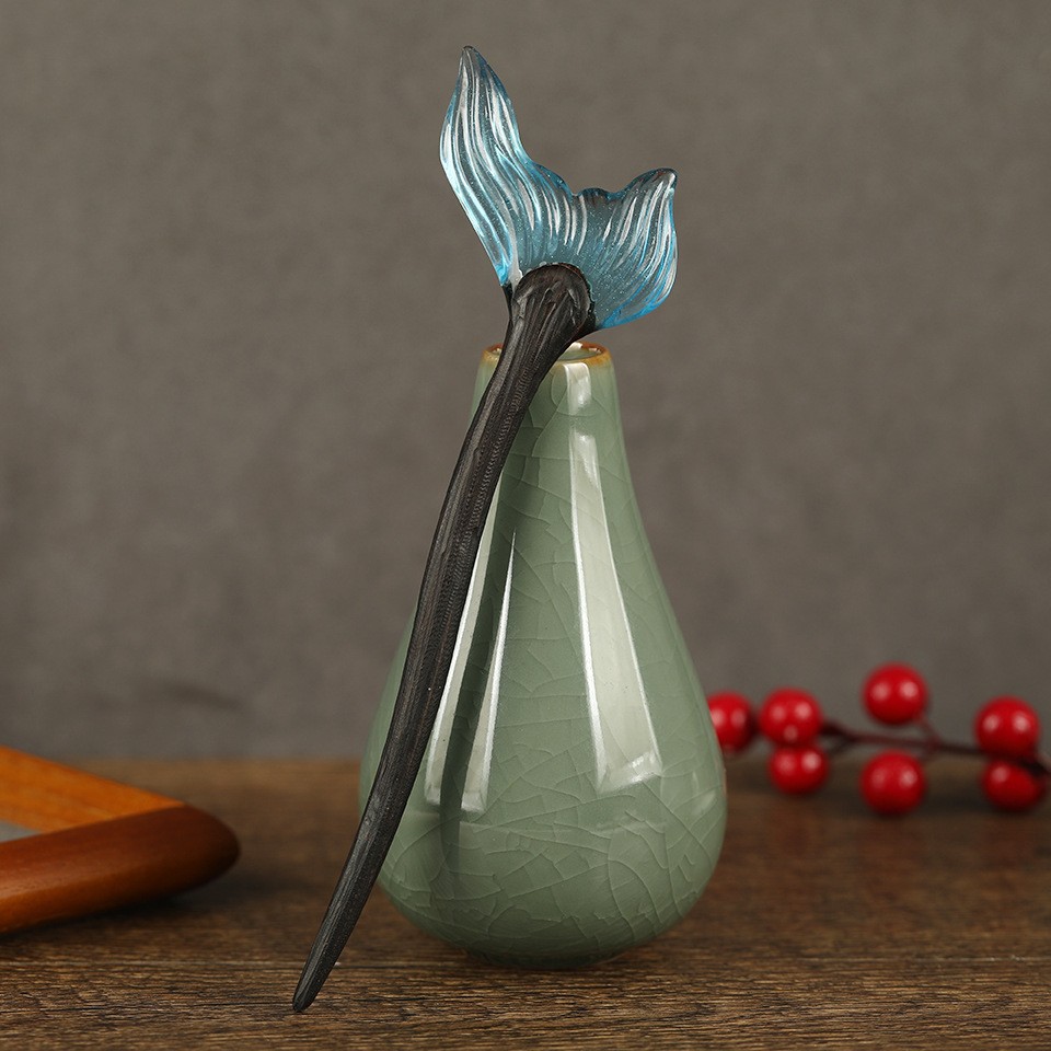 新中国式復古黒檀木閃透樹脂工芸木かんざしの子供の高級感があります。