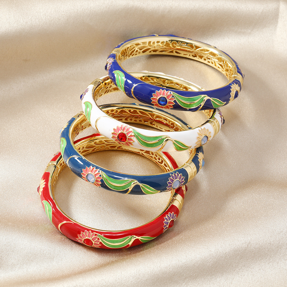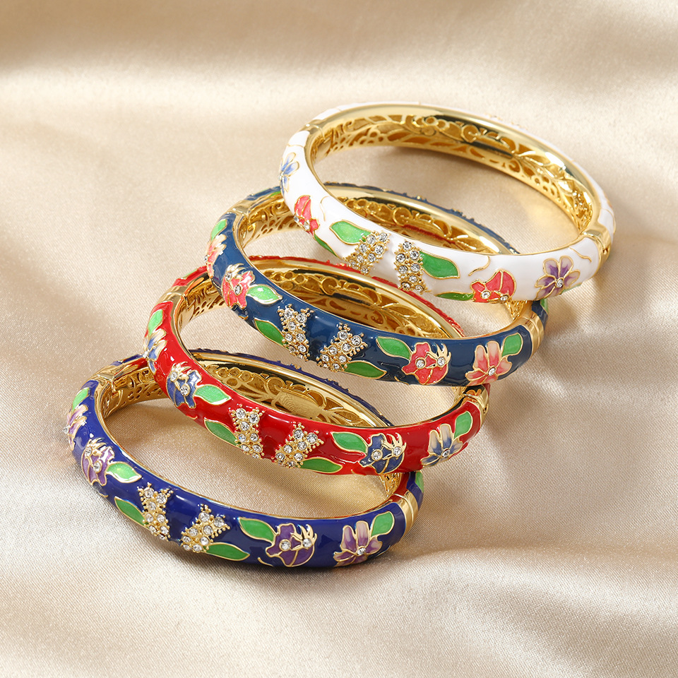 景泰藍女史ブレスレット漢服ブレスレットクロスボーダー装飾レトロ合金民族風アクセサリー誇張花卉手串