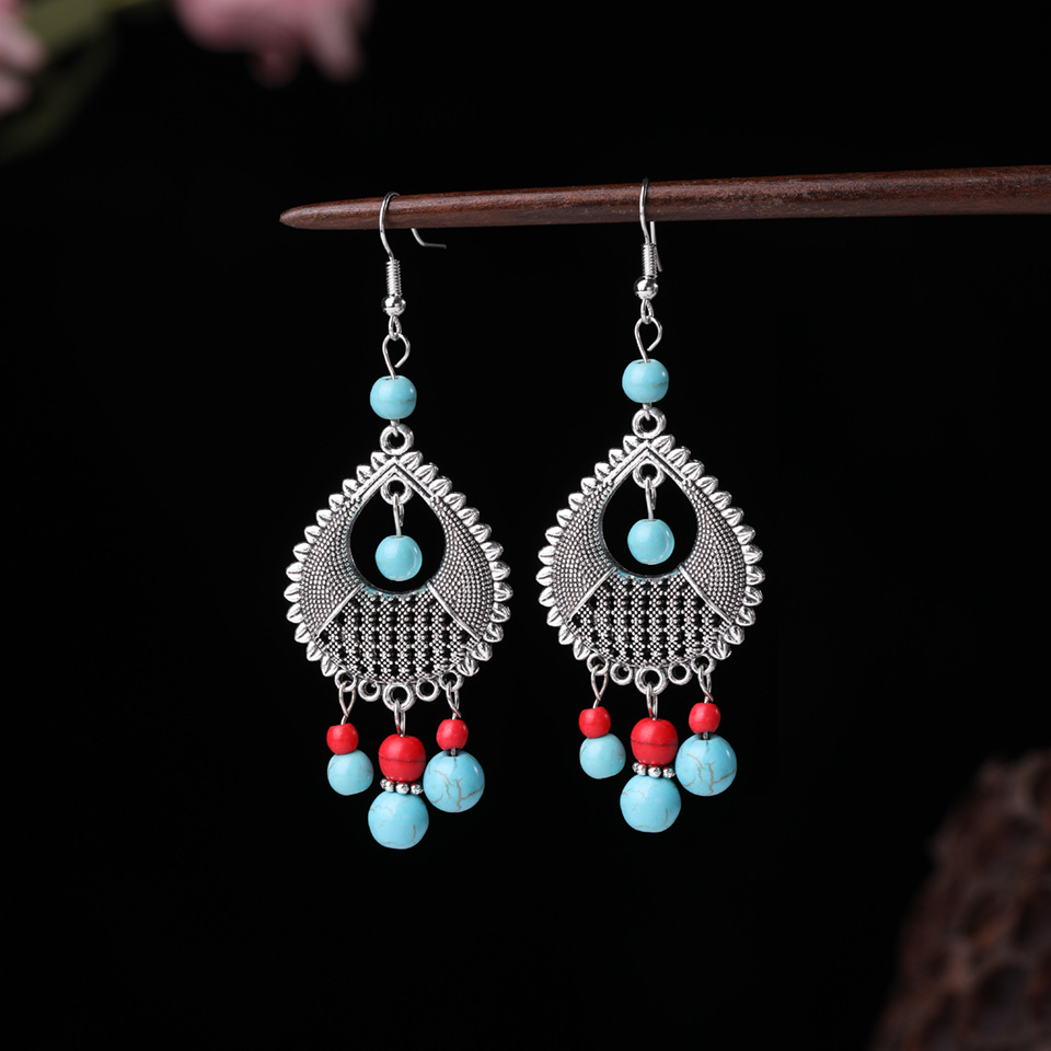 ファッション的な雰囲気の民族風の緑の松石の長いタイプのフリンジペンダントのイヤリングのレトロな欧米の異国の風情の長いタイプの耳飾り