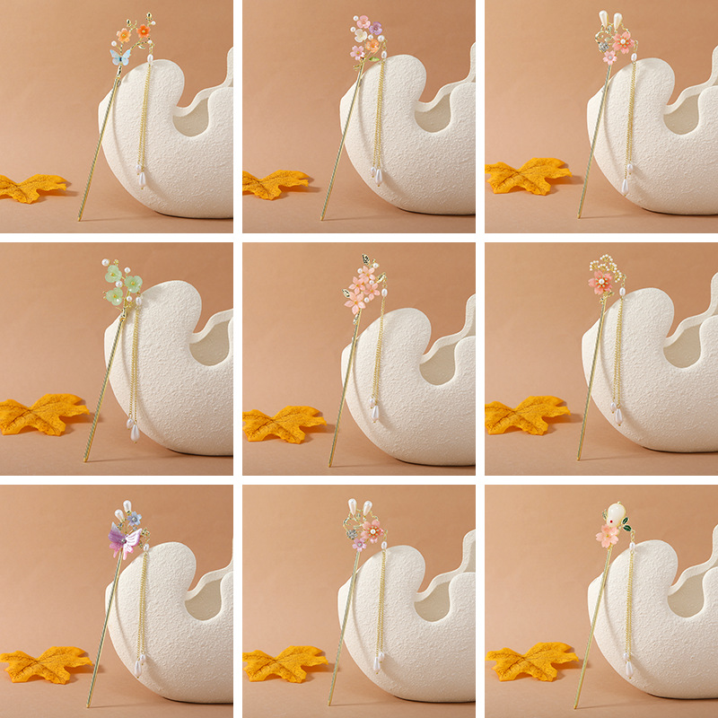古風ヘアピン漢服シンプル新中国式ヘアアクセサリー花長フリンジヘア