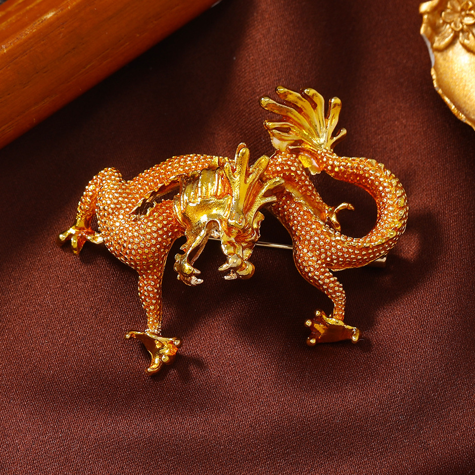 中国風高級デザイン感中国龍ブローチ十二生肖龍ピン復古気質スーツコートアクセサリー