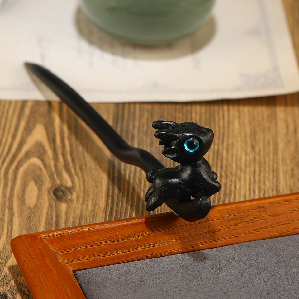 創意的な黒と緑の檀木のかんざしの動物は手でアニメのモデルを磨きます。