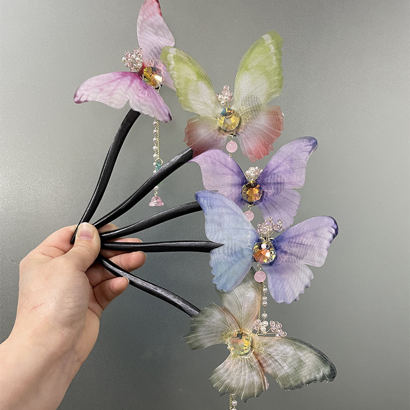レトロな流蘇蝶紗華髪かんざし古風歩揺盤髪飾り漢服チャイナドレスアクセサリー手作りかんざし