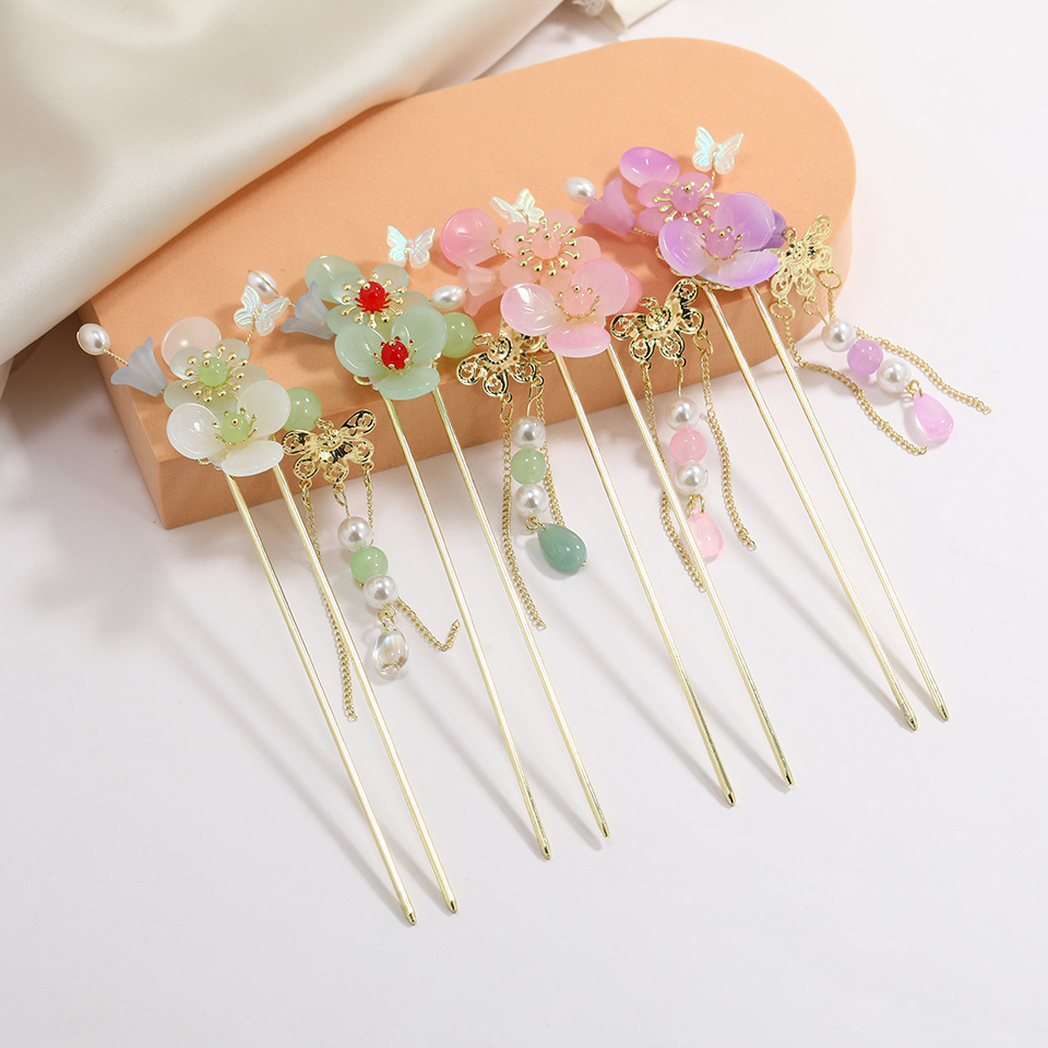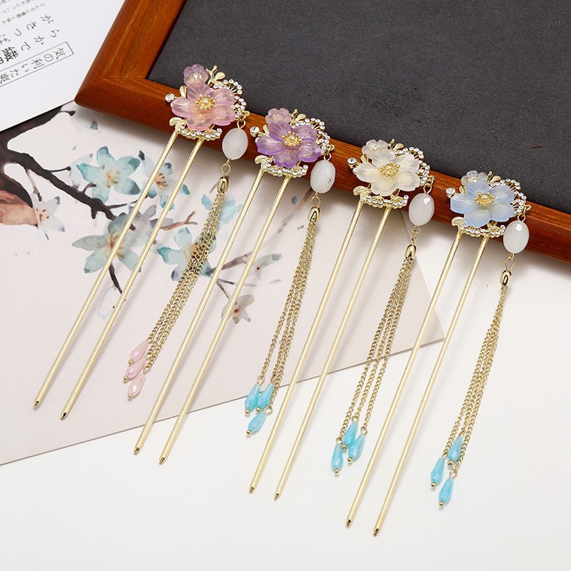 漢服簪子、古代風の流蘇付きヘアピン、女性用古代風ヘアピン、髪飾り、髪飾り品、ガラス製ヘアアクセサリー