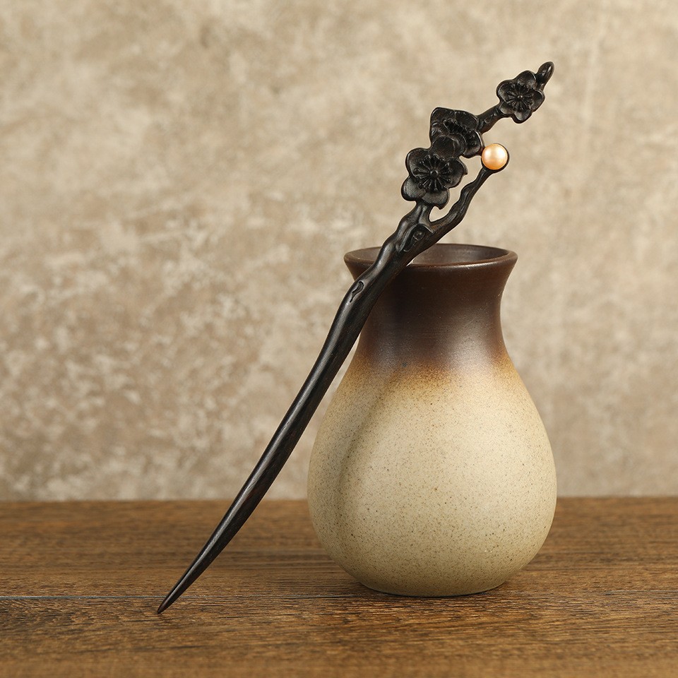 シンプルな古風黒檀木diy手作りの花のヘアピン