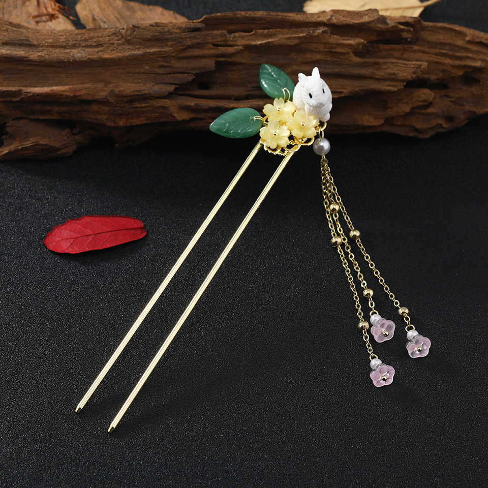 2023兎年アクセサリー流蘇ヘアピン中国風気質金属ヘアピン盤髪超アンドロメダ百合漢服アクセサリー