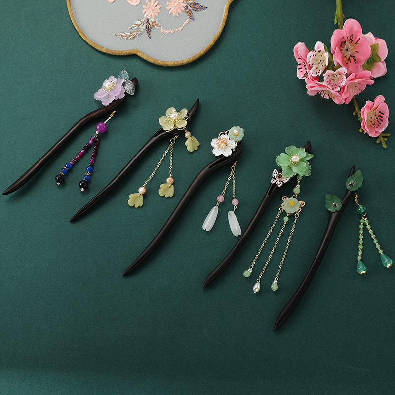 古風清新自然瑠璃流蘇歩揺発 _ 古風漢服アクセサリー手作り喬禾木diyヘアピン