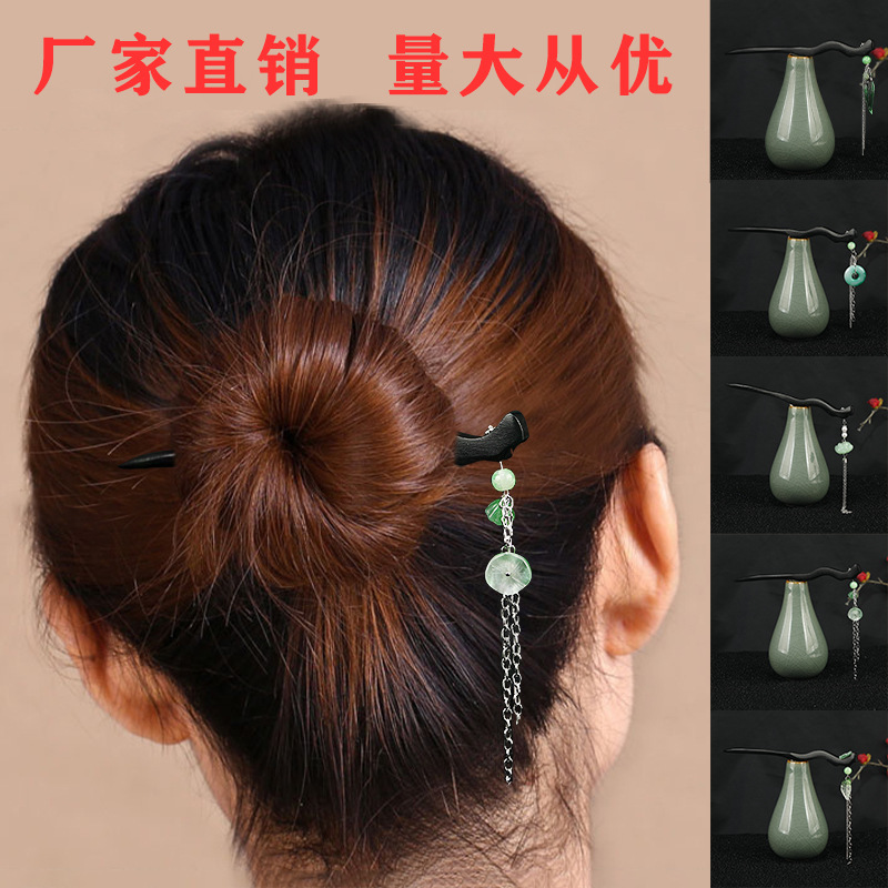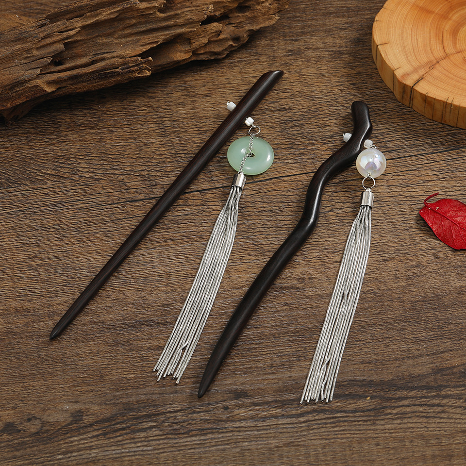 新しい中国式の簡単な予約の金の黒檀の木のかんざしの中国風の黒檀の流蘇はかんざしの頭を揺り動かしてチャイナドレスの漢服のアクセサリーを飾ります。