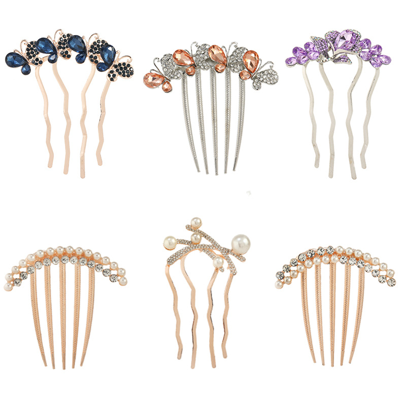 洗練された高級なレトロでシンプルな蝶花貝珠四歯u型盤髪飾り髪櫛