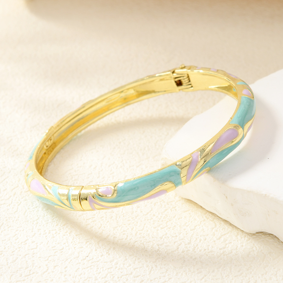 小紅書と同じスタイルの七宝焼きブレスレット、細いエナメルカラーのオープンレトロブレスレット、シンプルなジュエリー