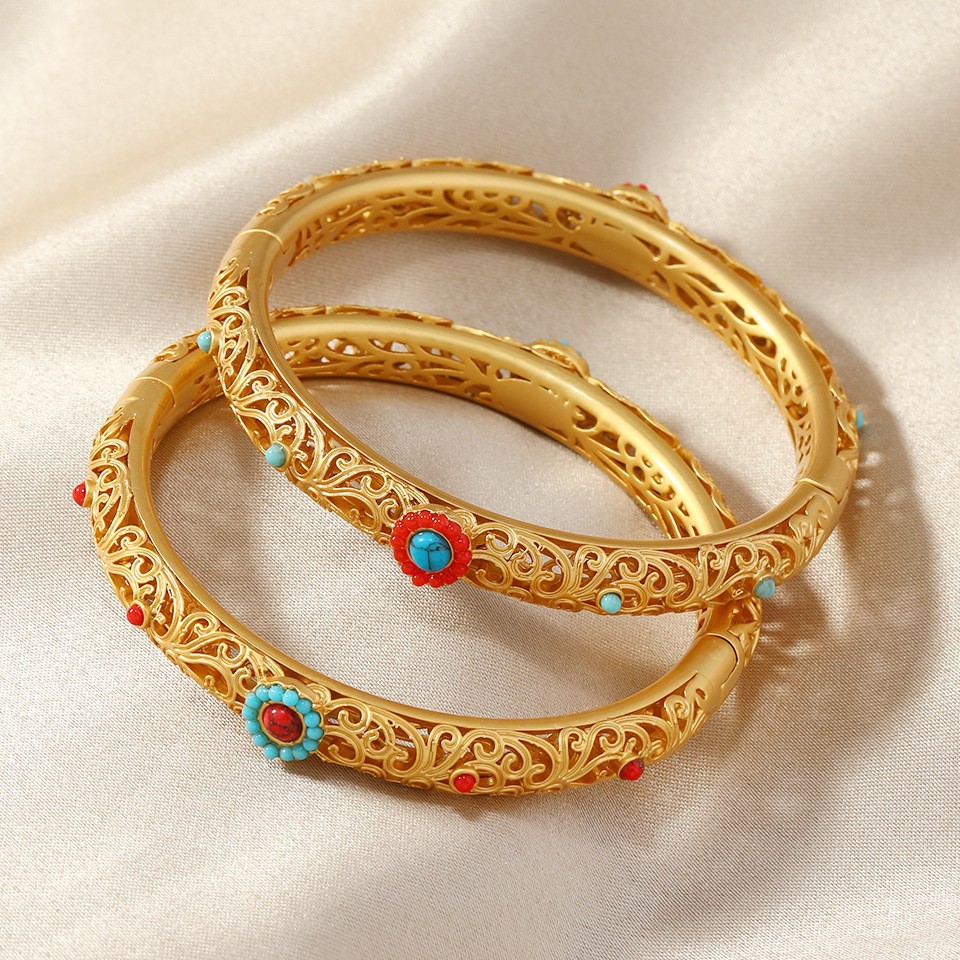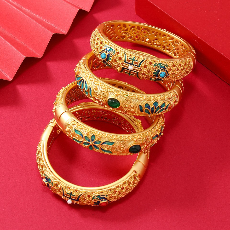 景泰藍国潮宮廷風敦煌伝承祥瑞エナメル抜き二重腕輪レトロ金メッキ開口プレゼント
